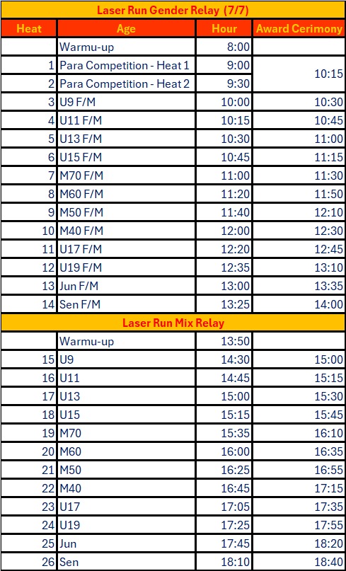 Schedules Laser Run Relay