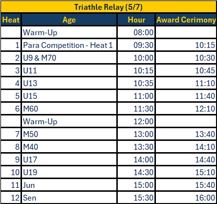 Schedules Triathle and Triathle Relay